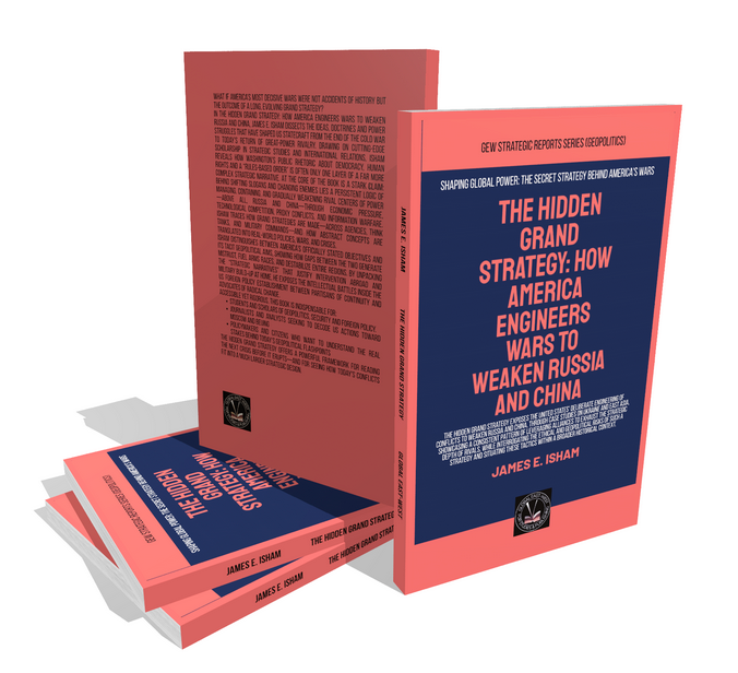In The Hidden Grand Strategy: How America Engineers Wars To Weaken Russia And China, James E. Isham dissects the ideas, doctrines, and power struggles that have shaped US statecraft from the end of the Cold War to today’s return of great-power rivalry. Drawing on cutting-edge scholarship in strategic studies and international relations, Isham reveals how Washington’s public rhetoric about democracy, human rights, and a “rules-based order” is often only one layer of a far more complex strategic narrative. At the core of the book is a stark claim: behind shifting slogans and changing enemies lies a persistent logic of managing, containing, and gradually weakening rival centers of power—above all Russia and China—through economic pressure, technological competition, proxy conflicts, and information warfare. Isham traces how grand strategy is made—across agencies, think tanks, and military commands—and how abstract concepts are translated into real‑world policies, wars, and crises.